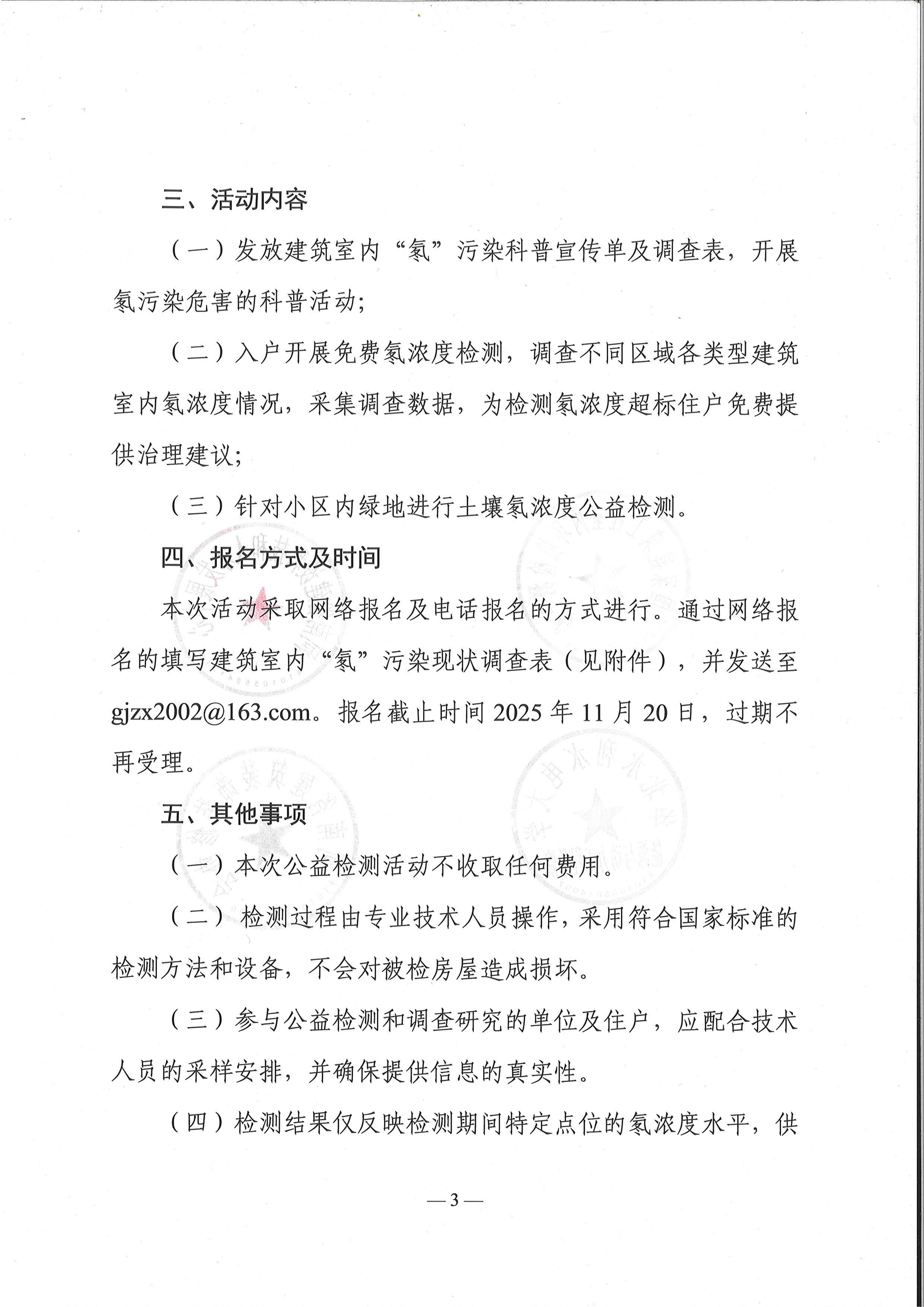关于开展“建筑室内氡污染”公益检测及调查研究活动的通知